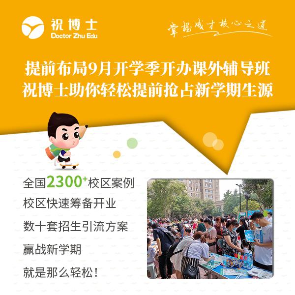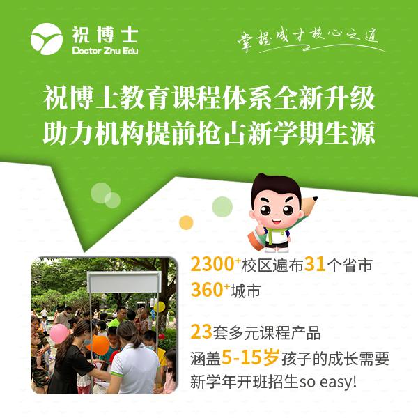 祝博士教育是目前专业的课后优管家加盟品牌。主要做中小学辅导班,学生托管班(午托,作业,全托),寒暑假辅导,补习班,作业辅导,作业辅导班、一对一辅导,特色培训班等服务。截至2020年5月在各地已有2200多家加盟校区。成功开班案例和成熟培训指导操作,让每个创业投资开班项目的你,成功运营,特色开班。