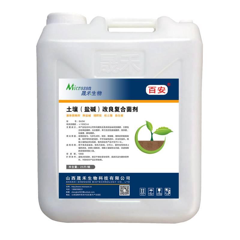 用法用量:使用前摇匀,与多孔材料、碳粉、腐殖酸、腐熟后的畜禽粪便、秸秆等有机肥混拌,不可与碱性肥料、杀菌剂混拌。根据土壤的盐渍化程度,每吨添加本产品不低于3-5L。